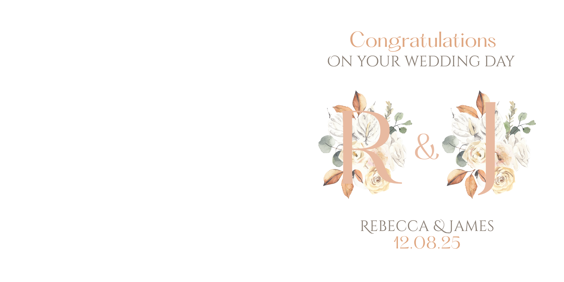 Send your warm wishes to the happy couple with this beautiful wedding card featuring a soft floral monogram design. Elegant typography and timeless florals make it the perfect card to celebrate their special day.